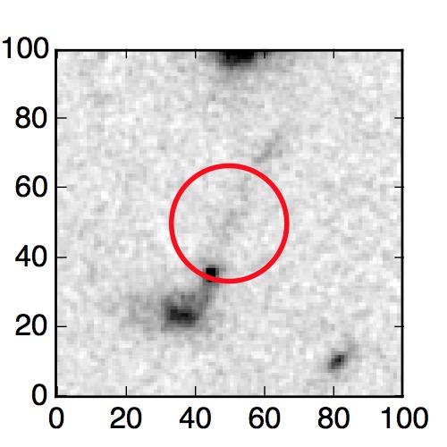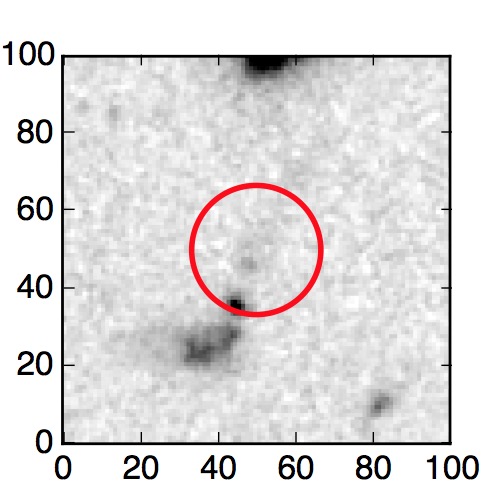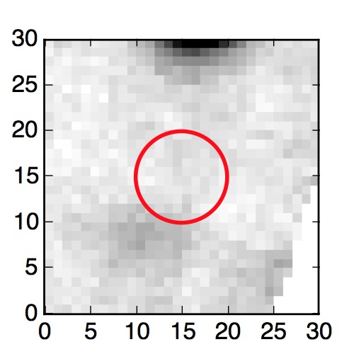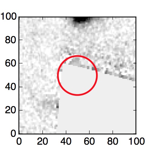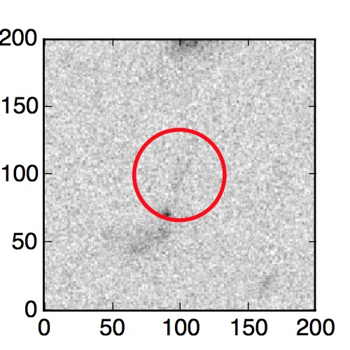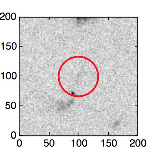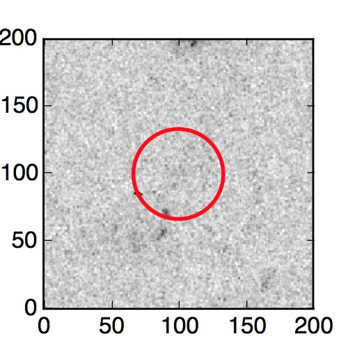 The red circle in the various panels is 1" in radius. The images are 6"x6".