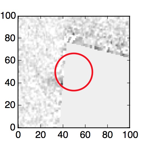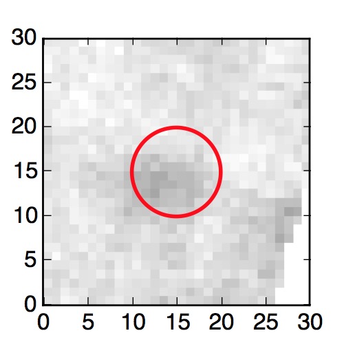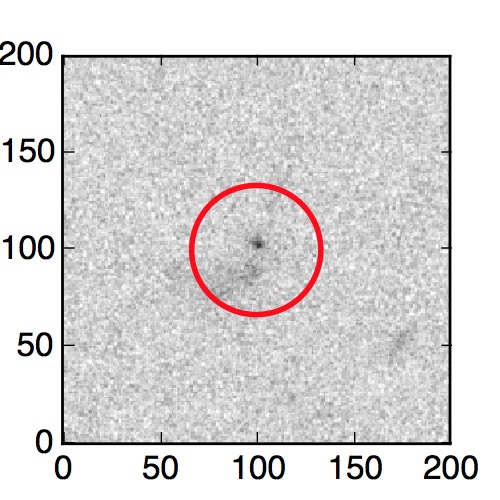 The red circle in the various panels is 1" in radius. The images are 6"x6".