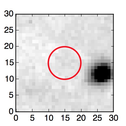 The red circle in the various panels is 1" in radius. The images are 6"x6".