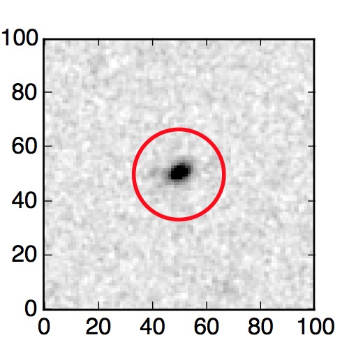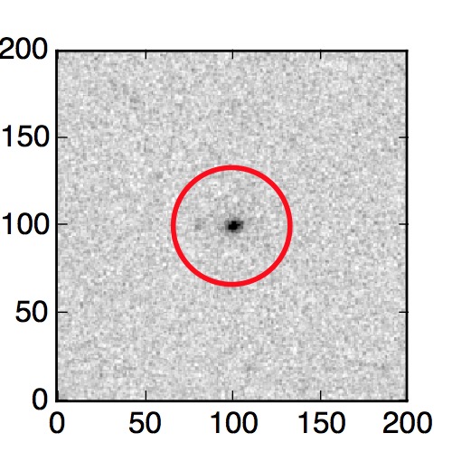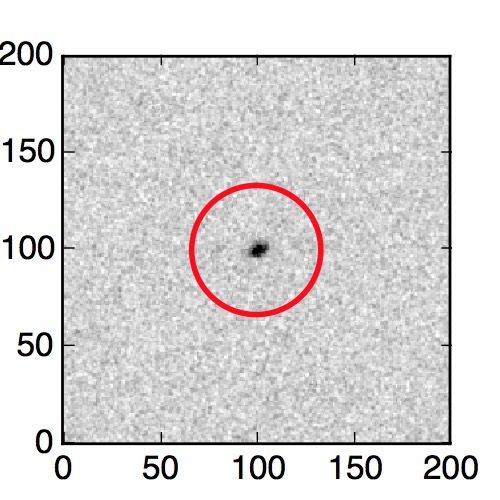 The red circle in the various panels is 1" in radius. The images are 6"x6".