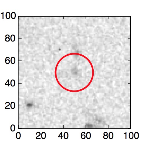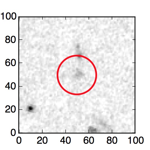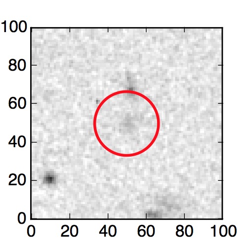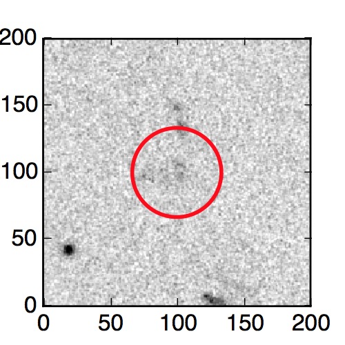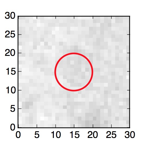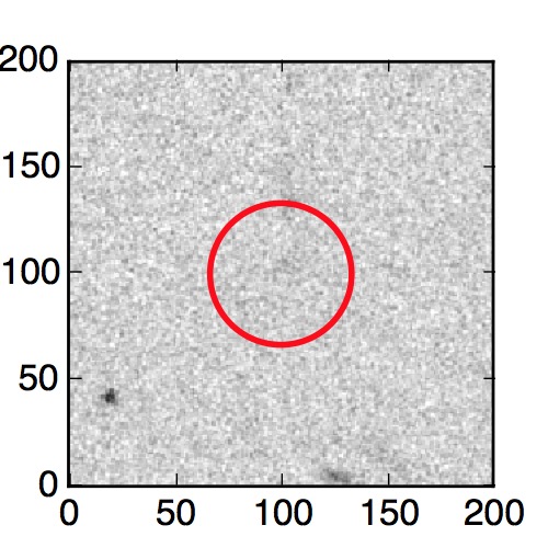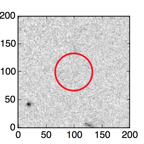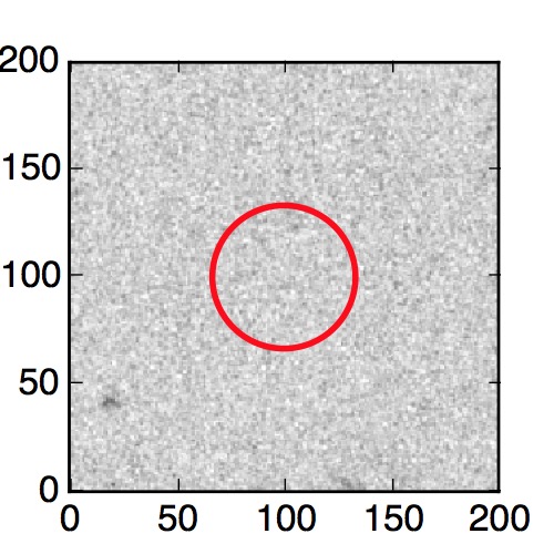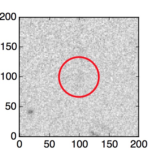 The red circle in the various panels is 1" in radius. The images are 6"x6".
