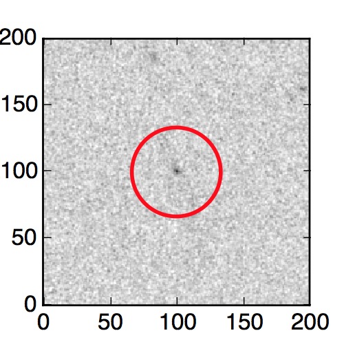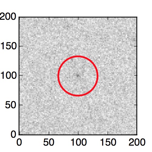 The red circle in the various panels is 1" in radius. The images are 6"x6".