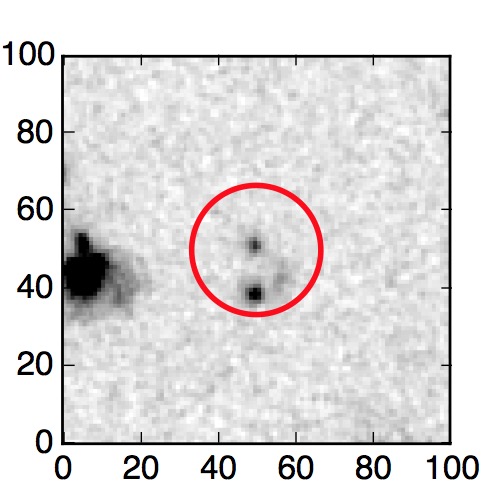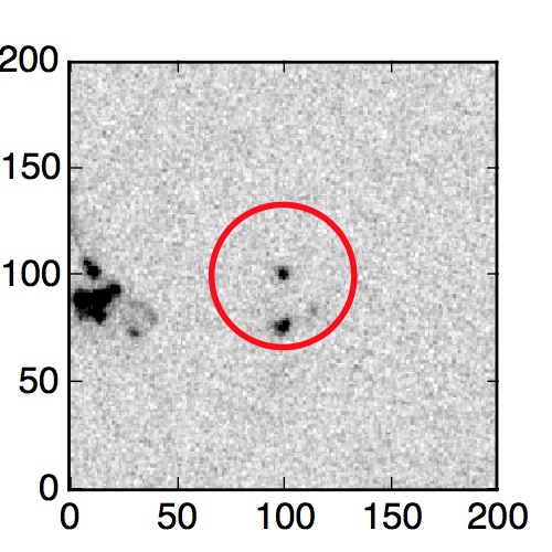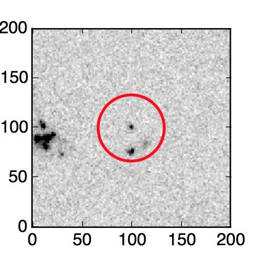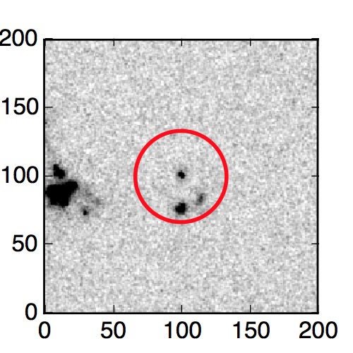The red circle in the various panels is 1" in radius. The images are 6"x6".