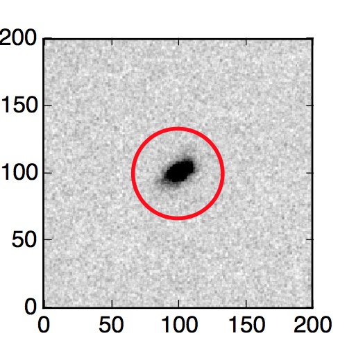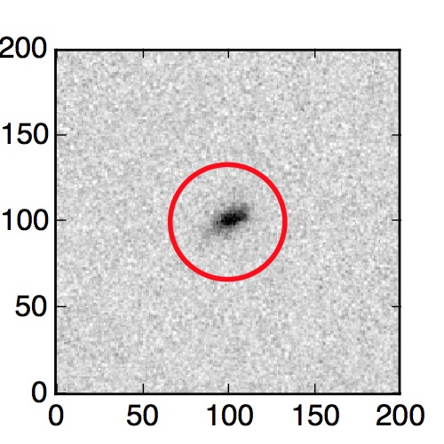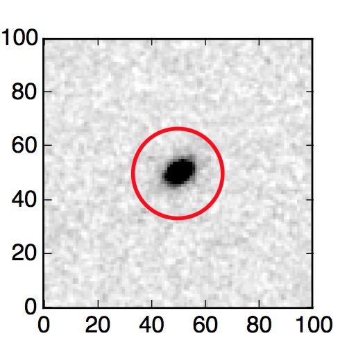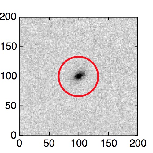 The red circle in the various panels is 1" in radius. The images are 6"x6".