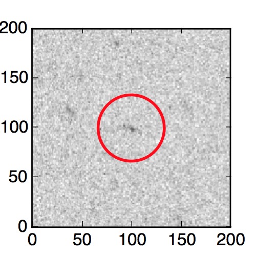 The red circle in the various panels is 1" in radius. The images are 6"x6".