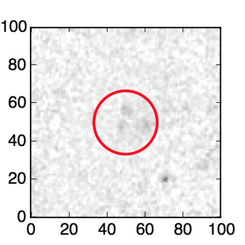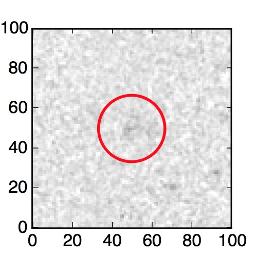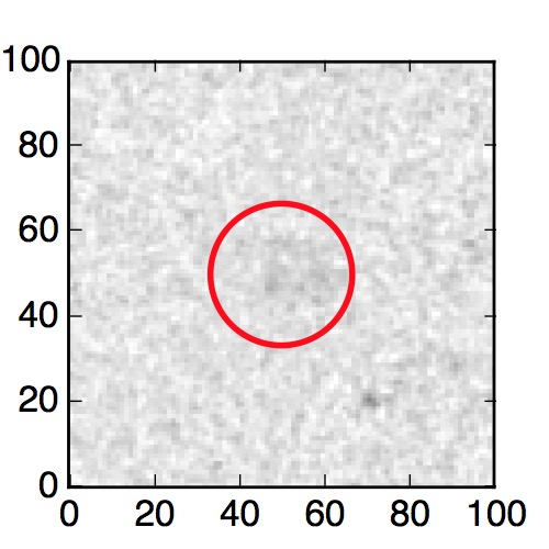 The red circle in the various panels is 1" in radius. The images are 6"x6".