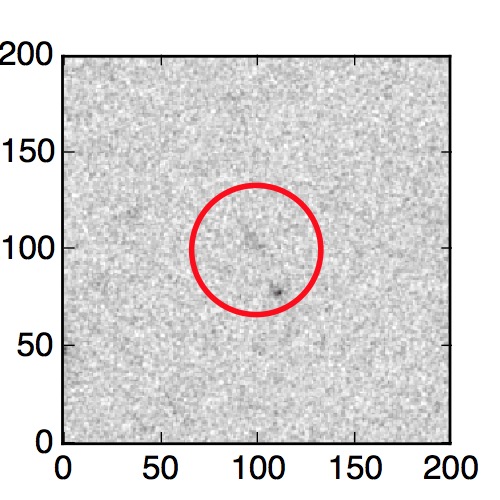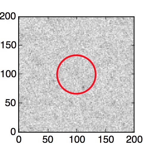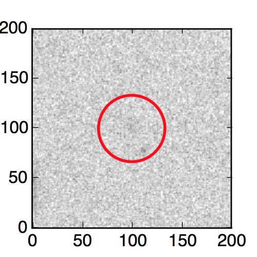 The red circle in the various panels is 1" in radius. The images are 6"x6".