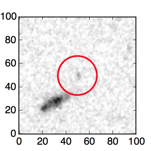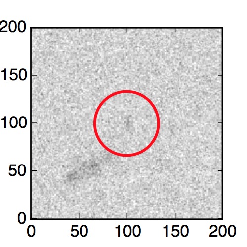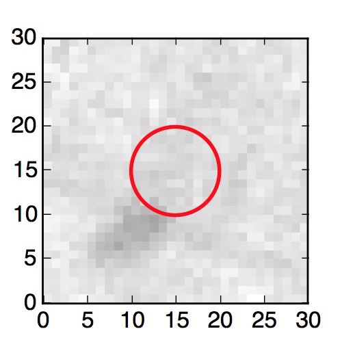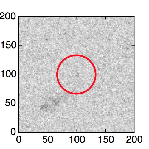 The red circle in the various panels is 1" in radius. The images are 6"x6".