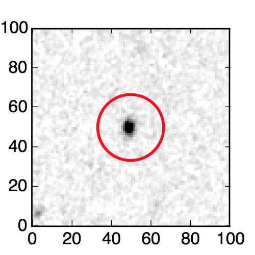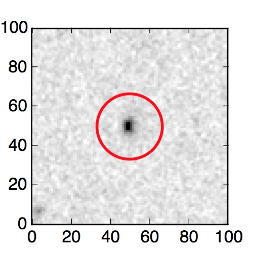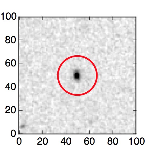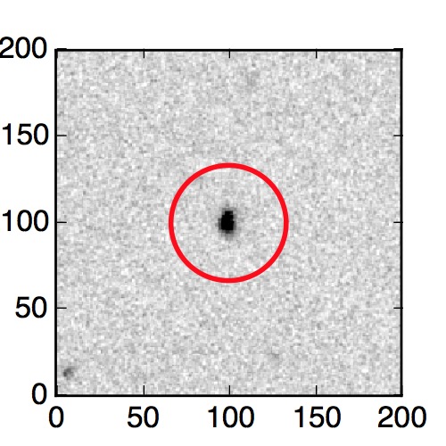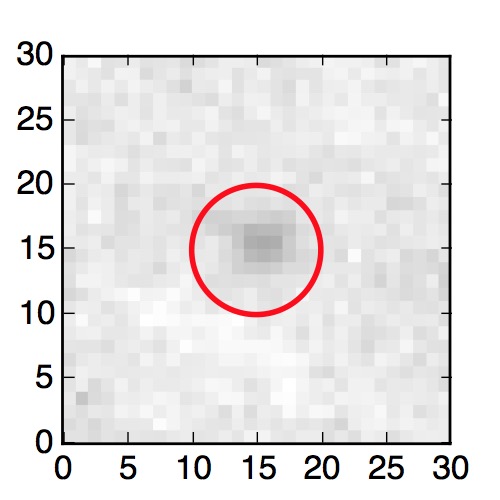 The red circle in the various panels is 1" in radius. The images are 6"x6".