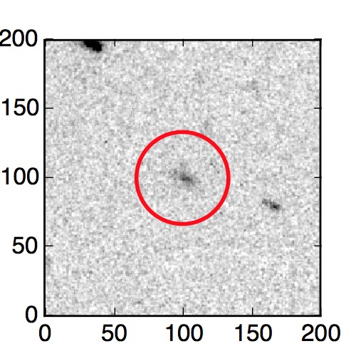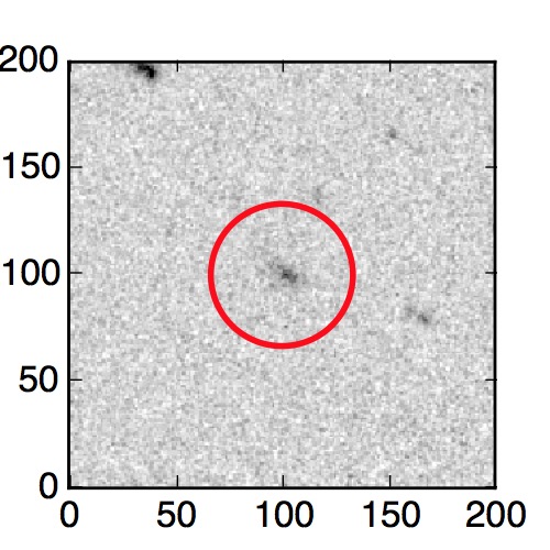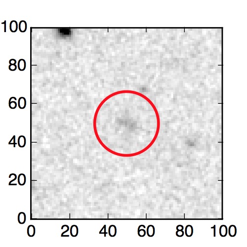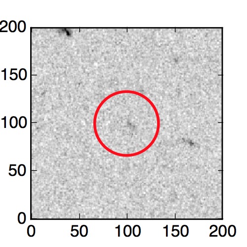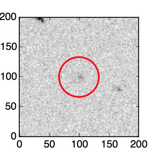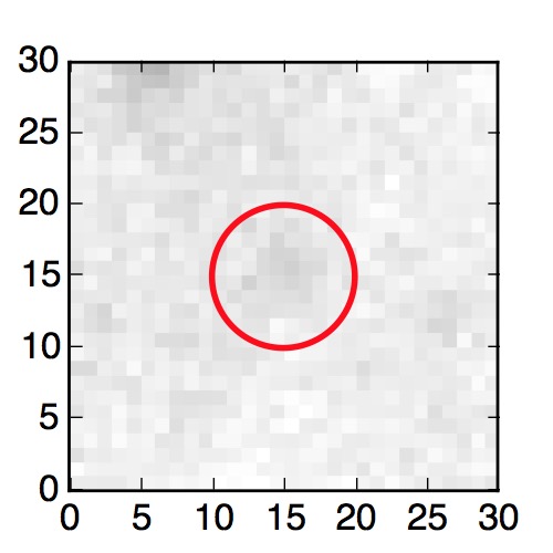 The red circle in the various panels is 1" in radius. The images are 6"x6".
