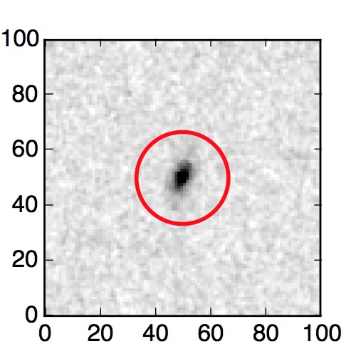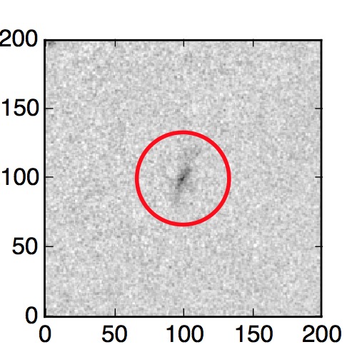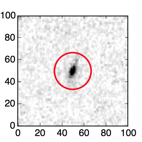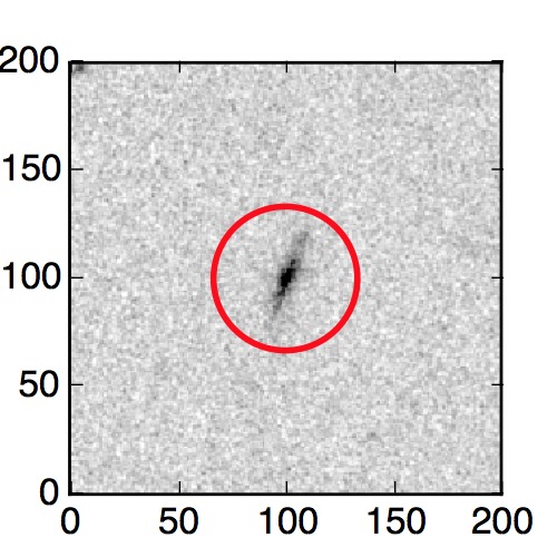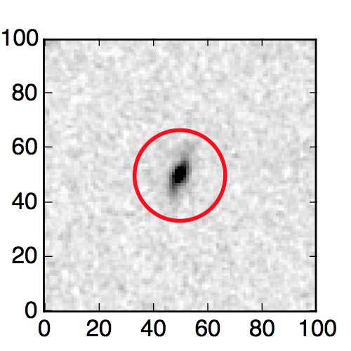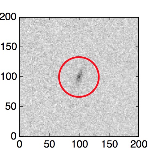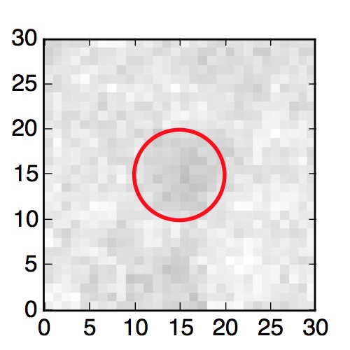 The red circle in the various panels is 1" in radius. The images are 6"x6".