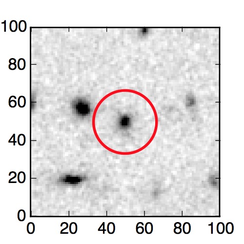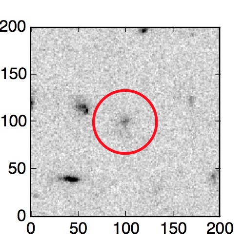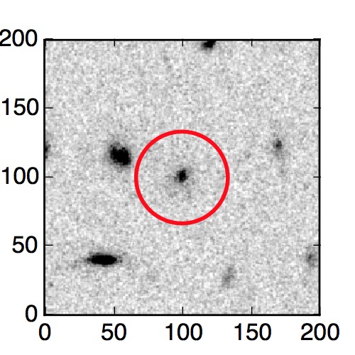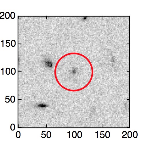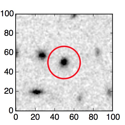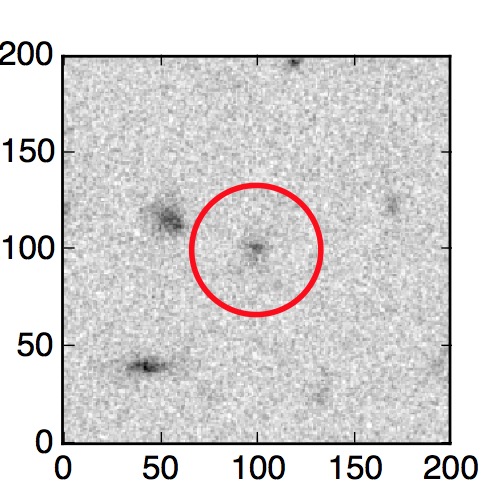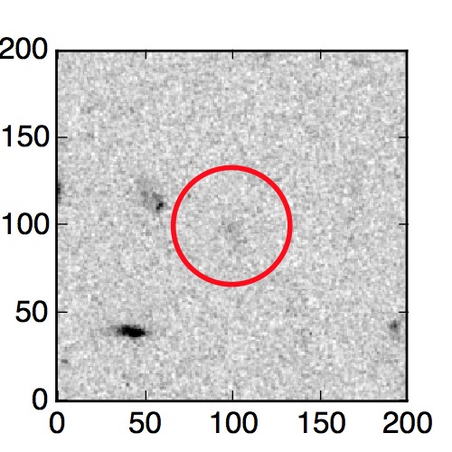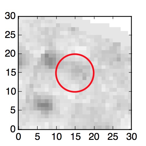 The red circle in the various panels is 1" in radius. The images are 6"x6".