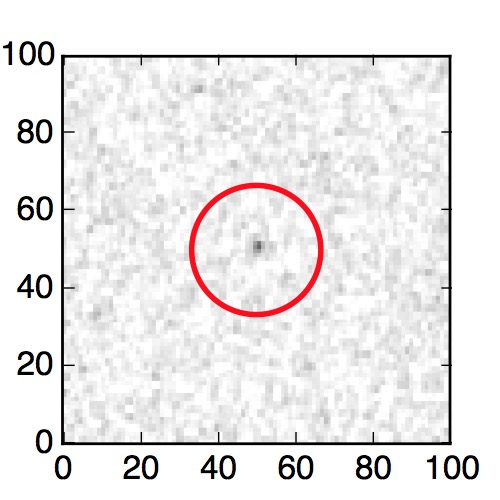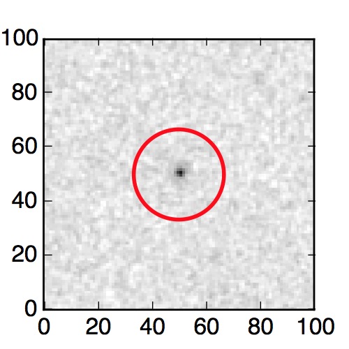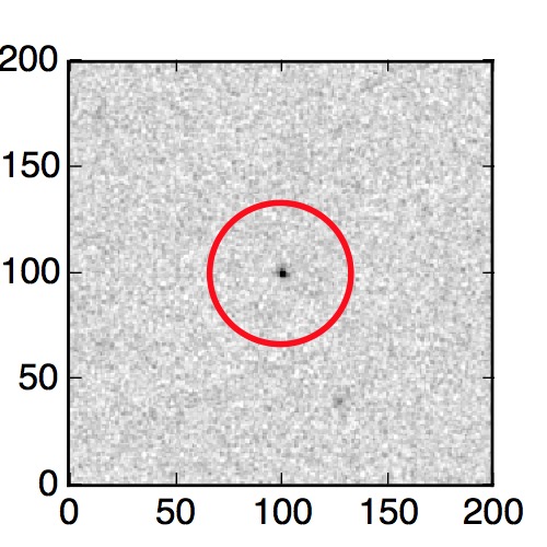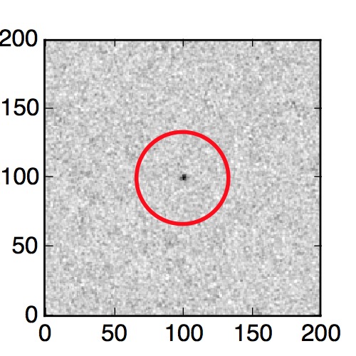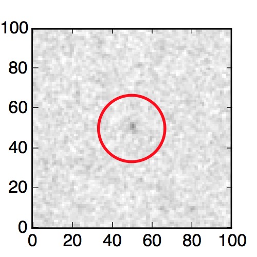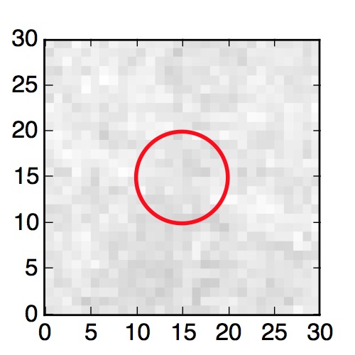 The red circle in the various panels is 1" in radius. The images are 6"x6".