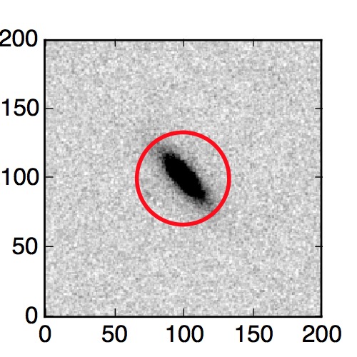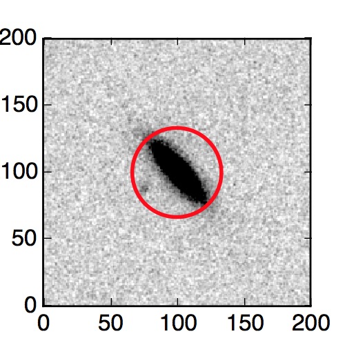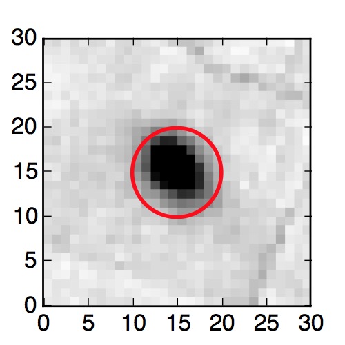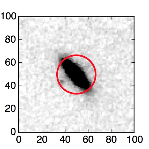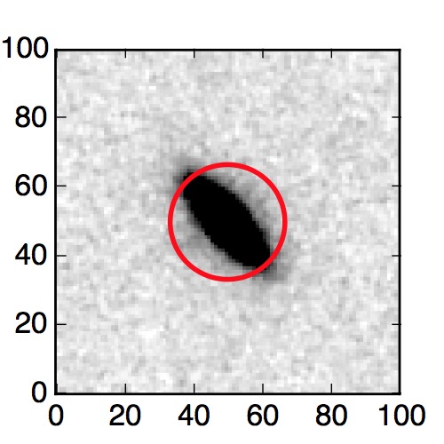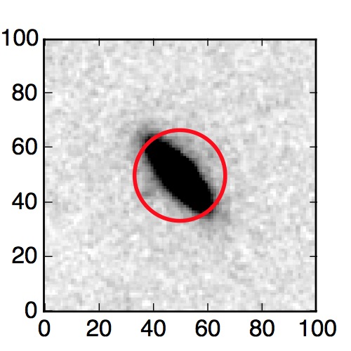 The red circle in the various panels is 1" in radius. The images are 6"x6".