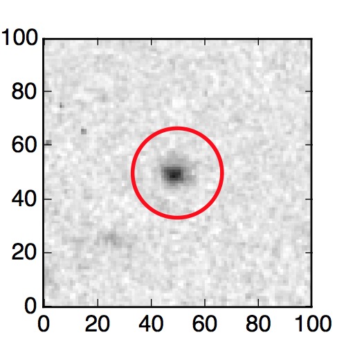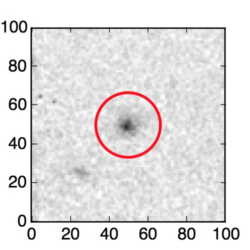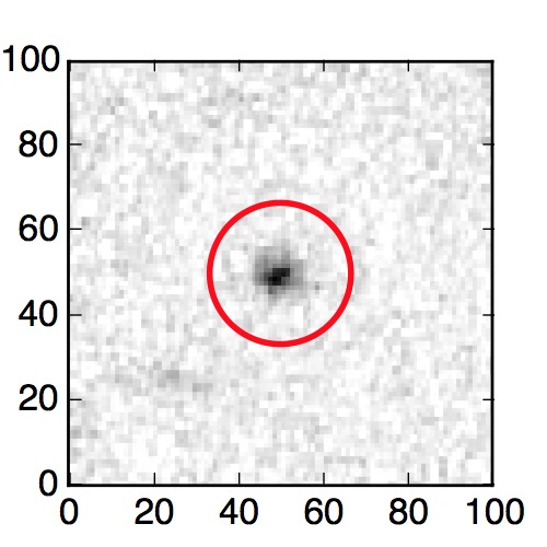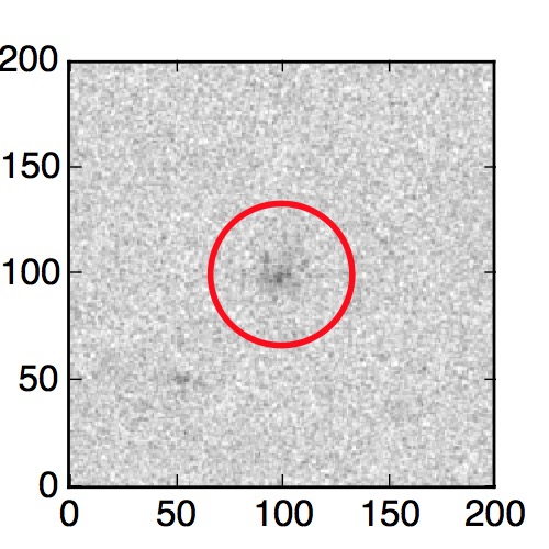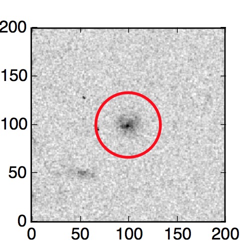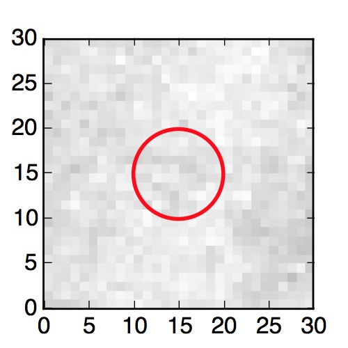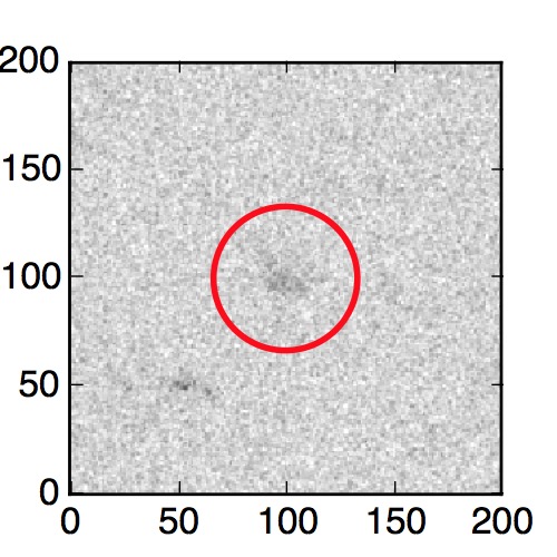 The red circle in the various panels is 1" in radius. The images are 6"x6".