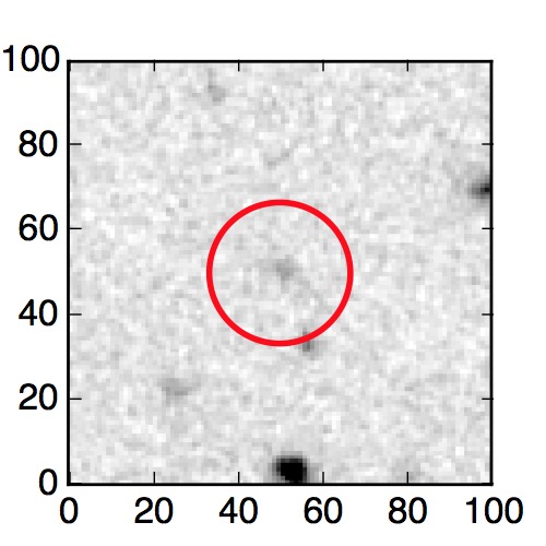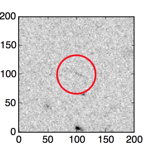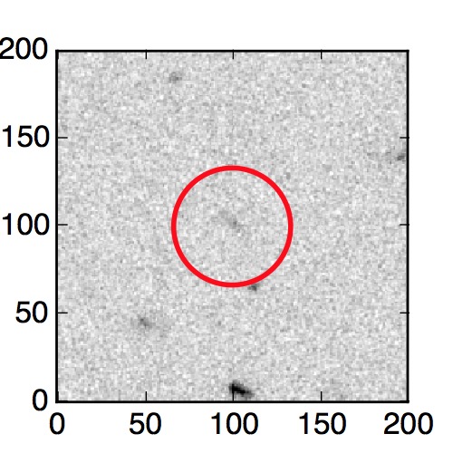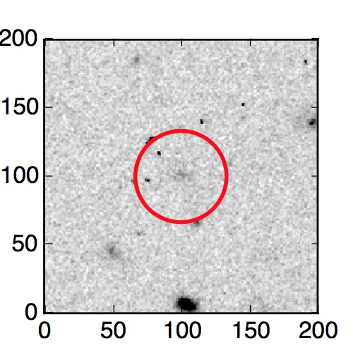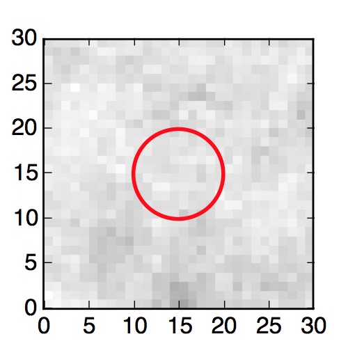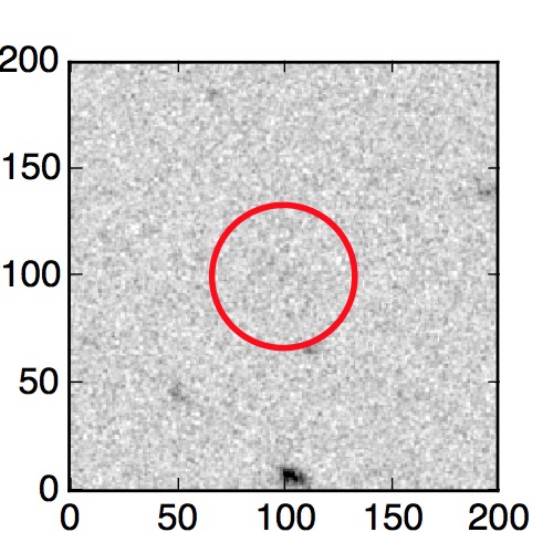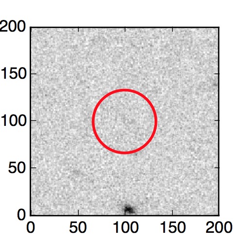 The red circle in the various panels is 1" in radius. The images are 6"x6".