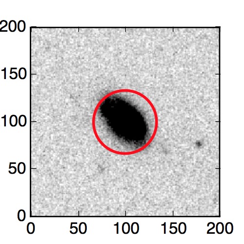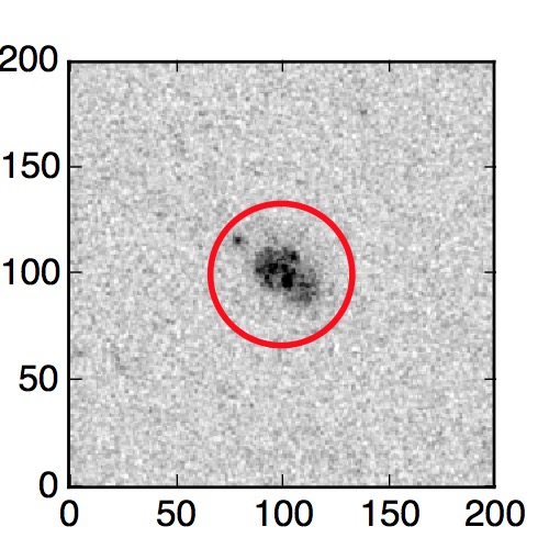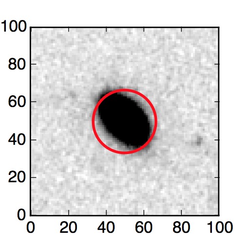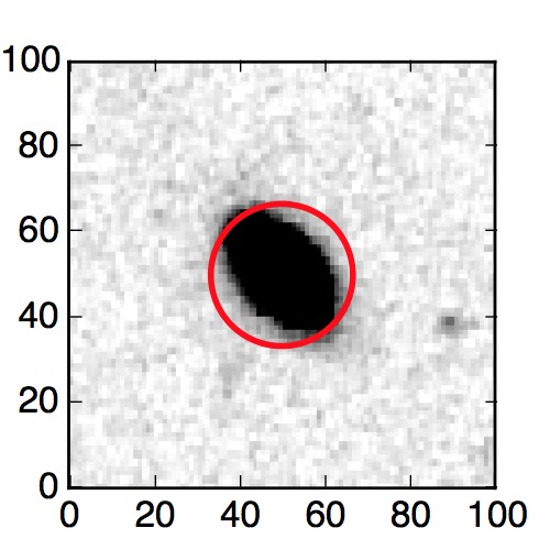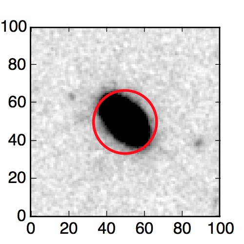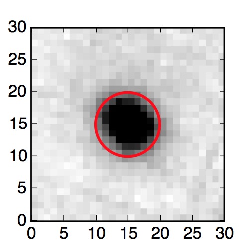 The red circle in the various panels is 1" in radius. The images are 6"x6".