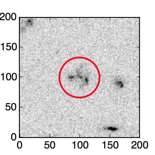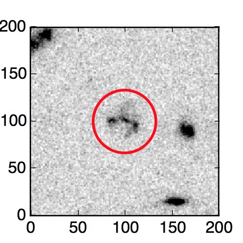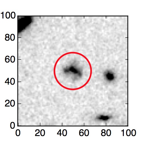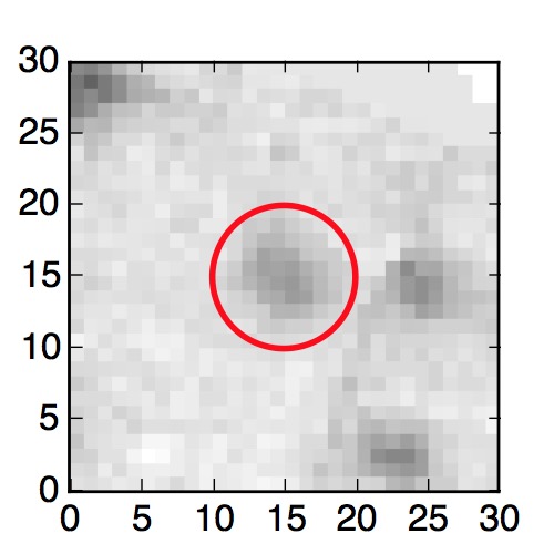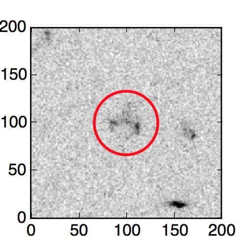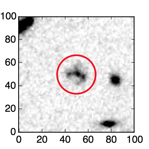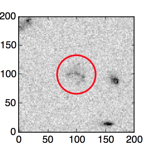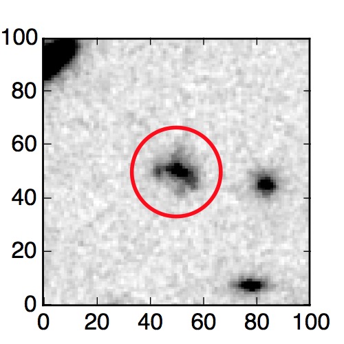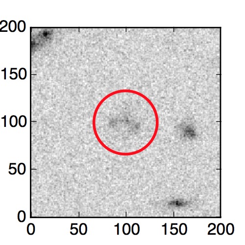 The red circle in the various panels is 1" in radius. The images are 6"x6".
