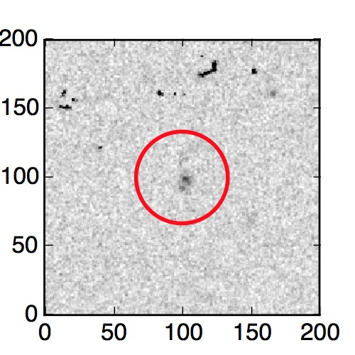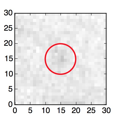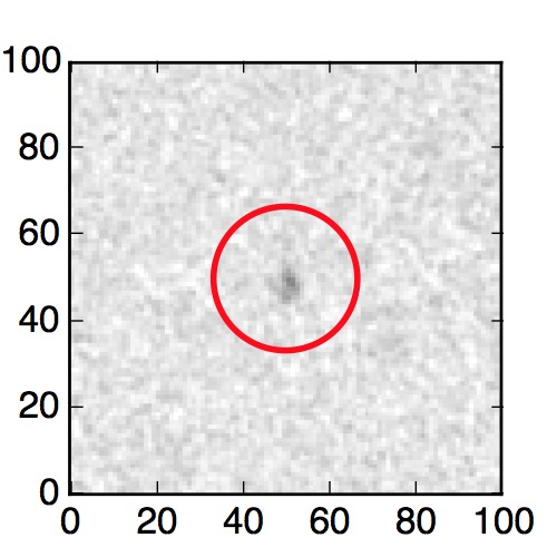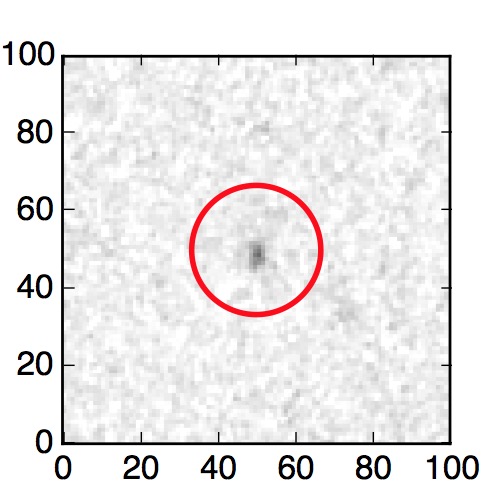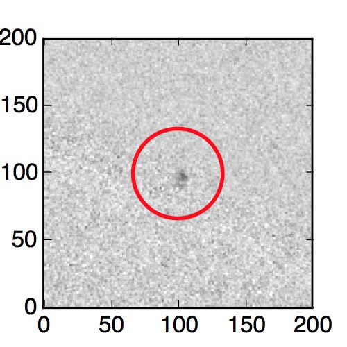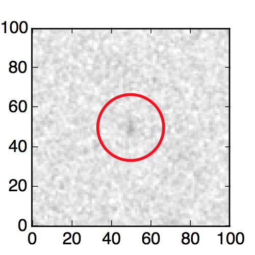 The red circle in the various panels is 1" in radius. The images are 6"x6".