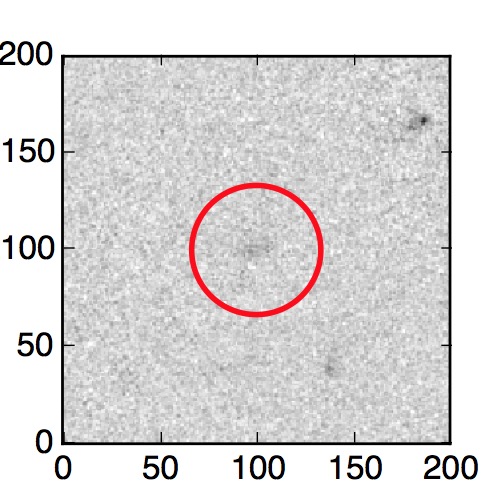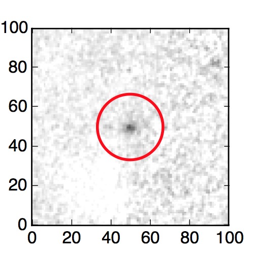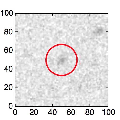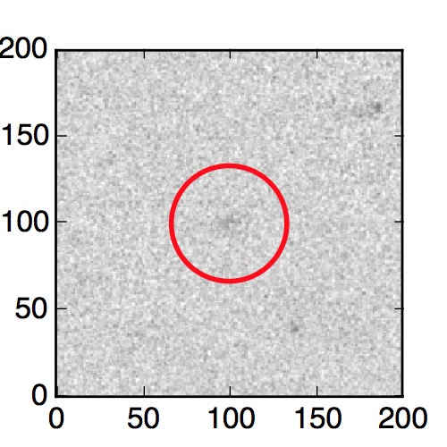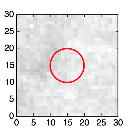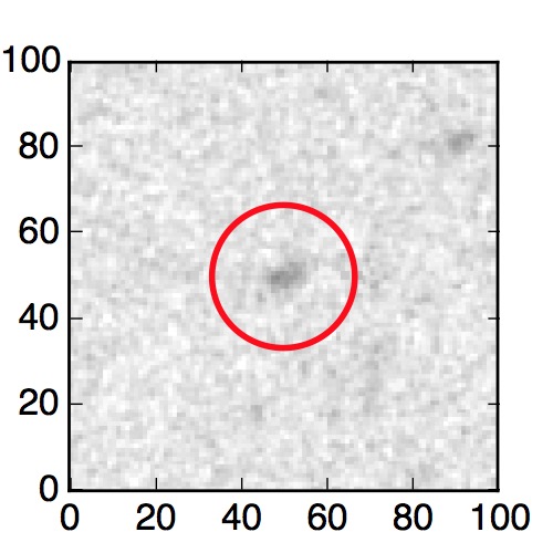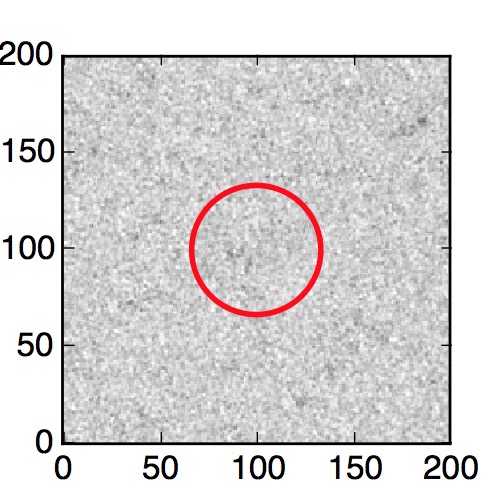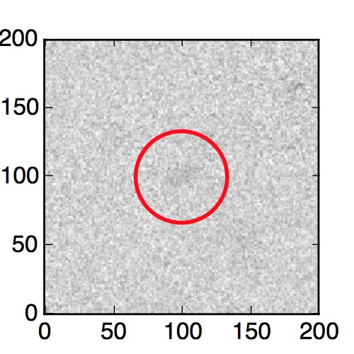 The red circle in the various panels is 1" in radius. The images are 6"x6".