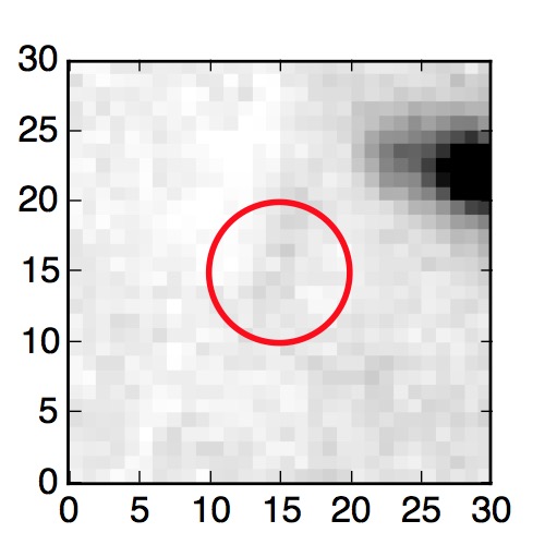 The red circle in the various panels is 1" in radius. The images are 6"x6".