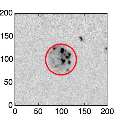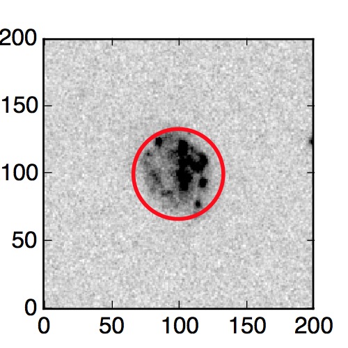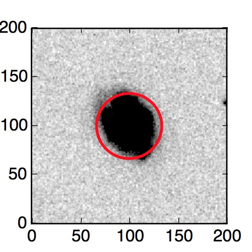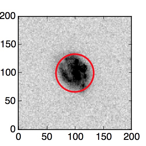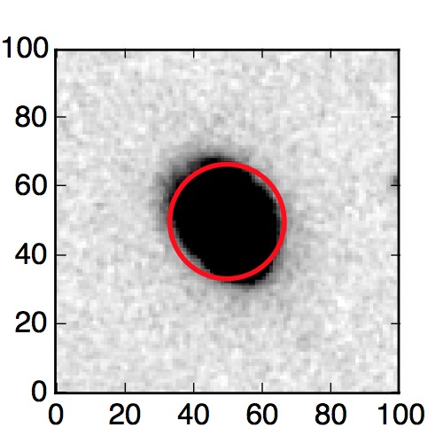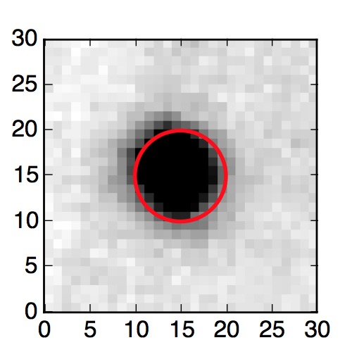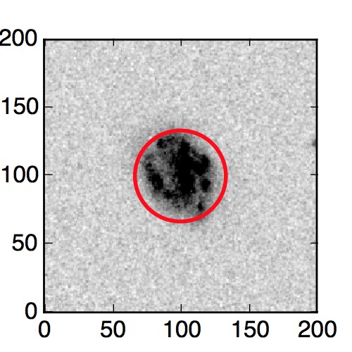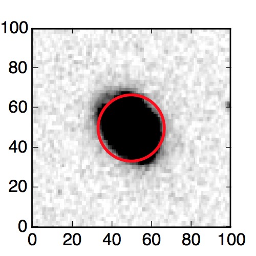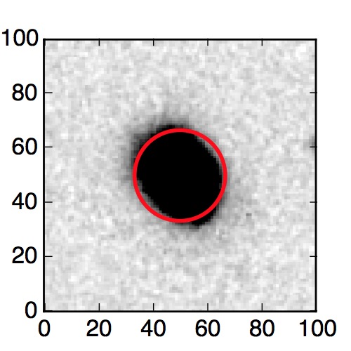 The red circle in the various panels is 1" in radius. The images are 6"x6".