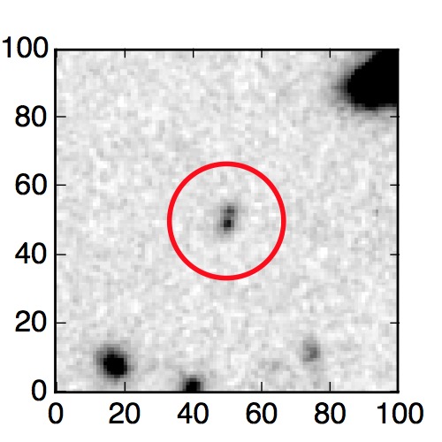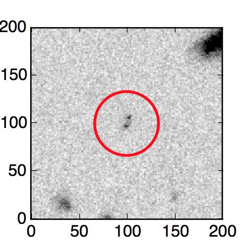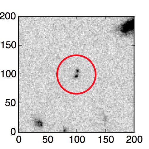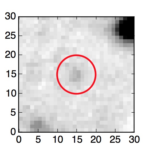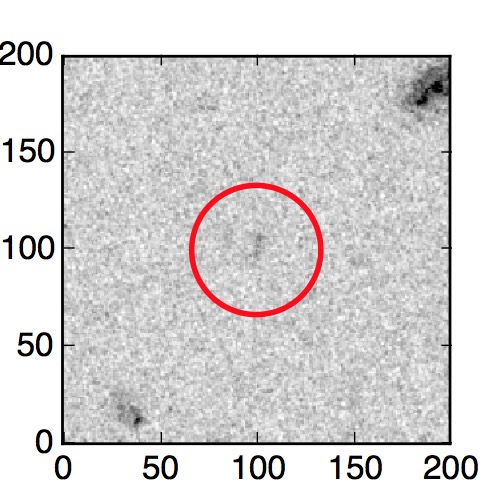 The red circle in the various panels is 1" in radius. The images are 6"x6".