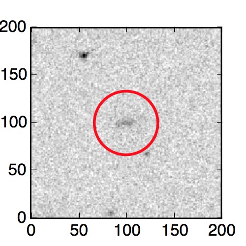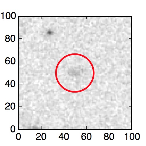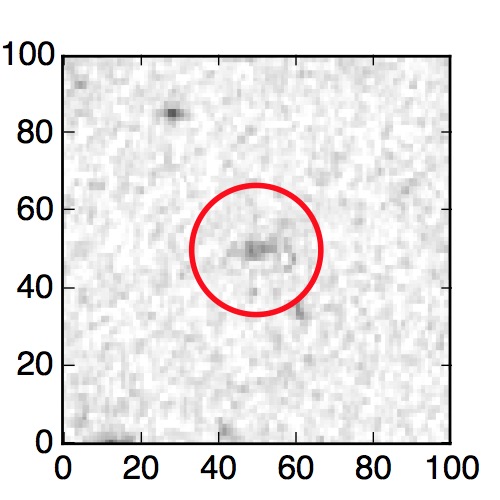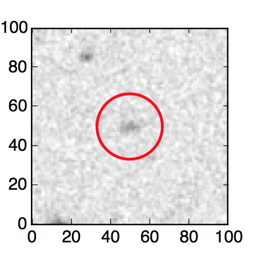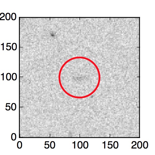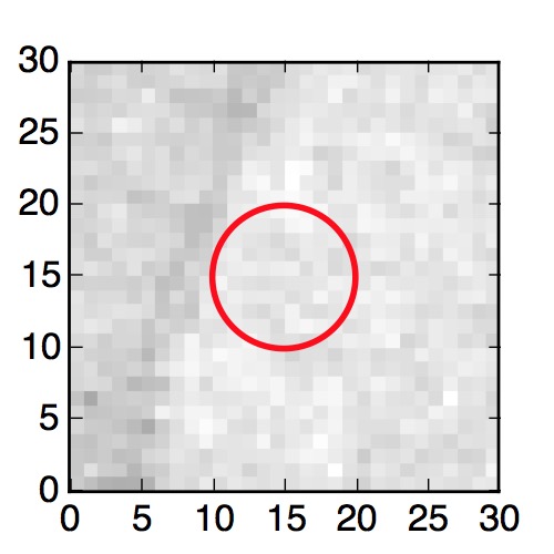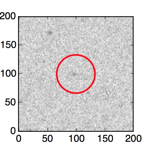 The red circle in the various panels is 1" in radius. The images are 6"x6".