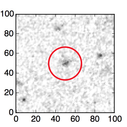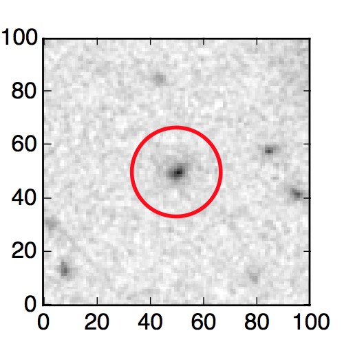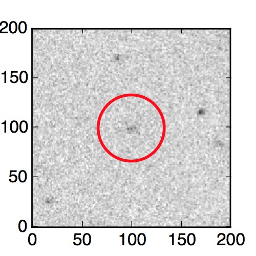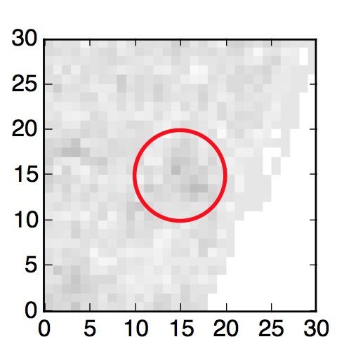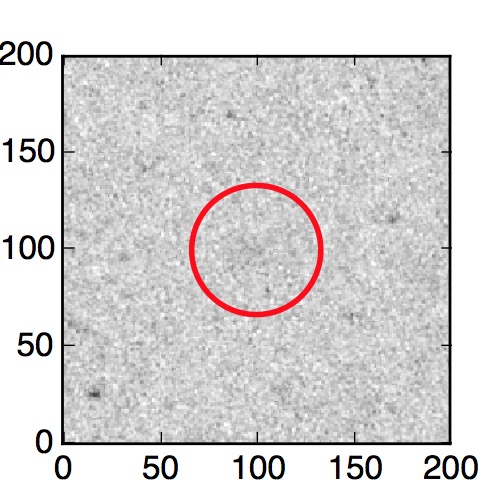 The red circle in the various panels is 1" in radius. The images are 6"x6".