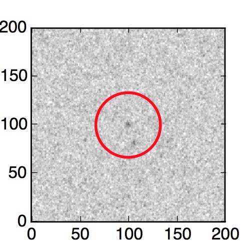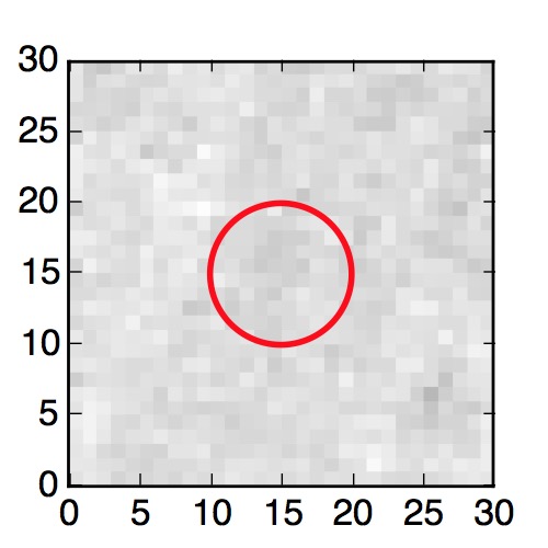 The red circle in the various panels is 1" in radius. The images are 6"x6".