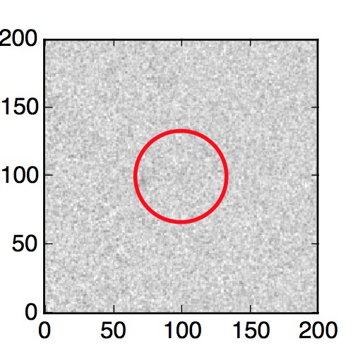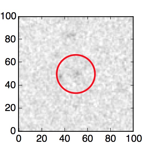 The red circle in the various panels is 1" in radius. The images are 6"x6".