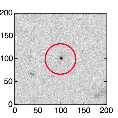 The red circle in the various panels is 1" in radius. The images are 6"x6".