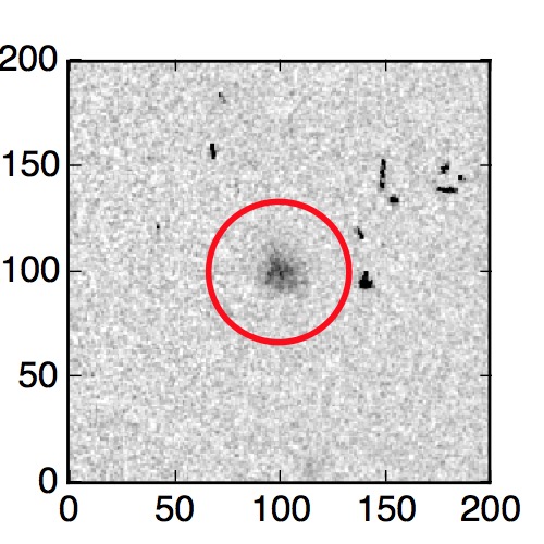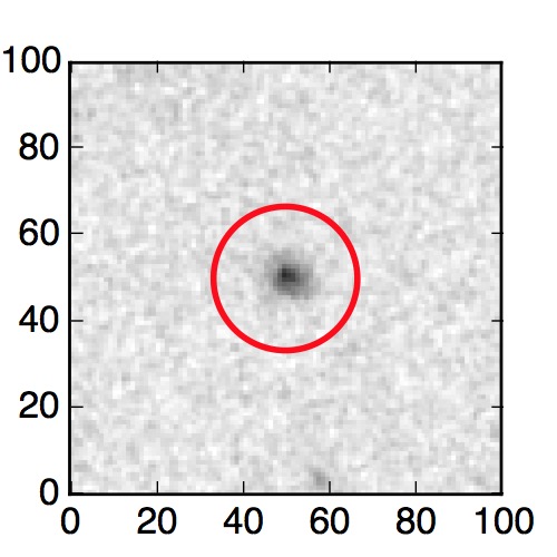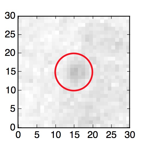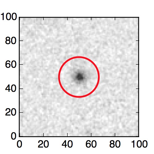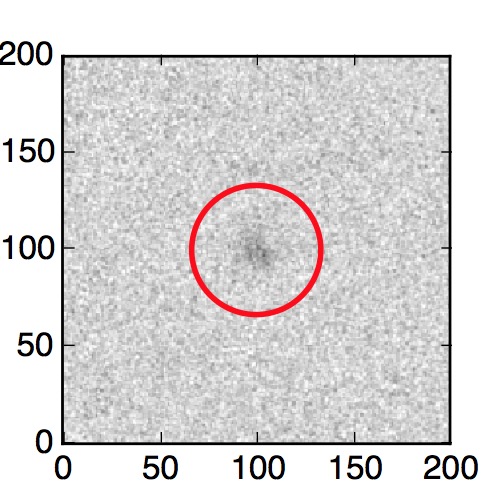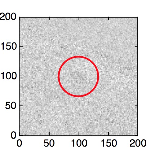 The red circle in the various panels is 1" in radius. The images are 6"x6".
