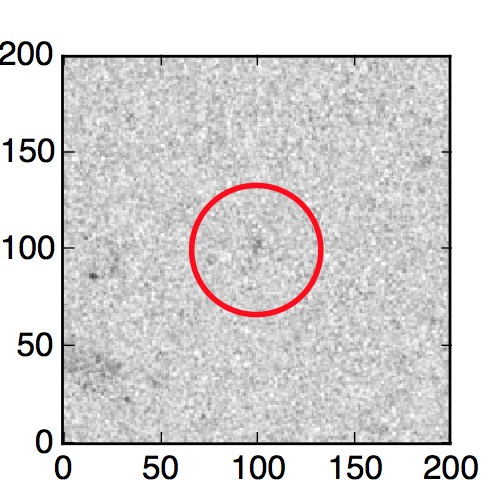 The red circle in the various panels is 1" in radius. The images are 6"x6".