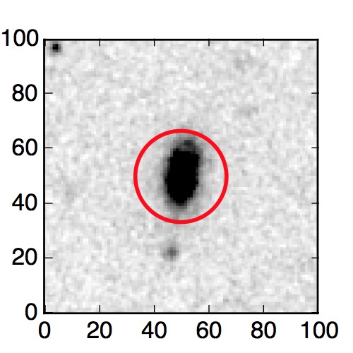 The red circle in the various panels is 1" in radius. The images are 6"x6".