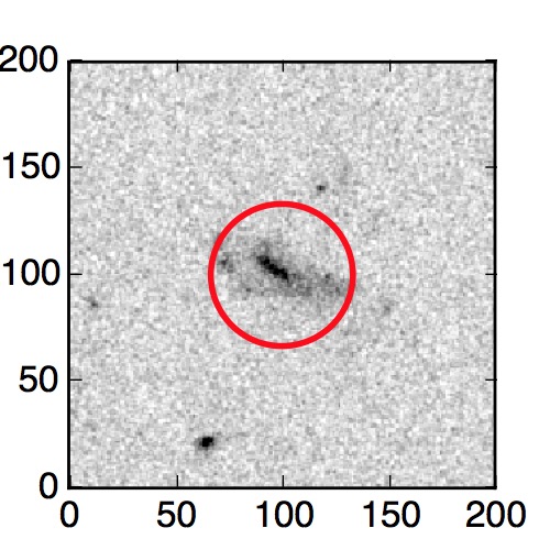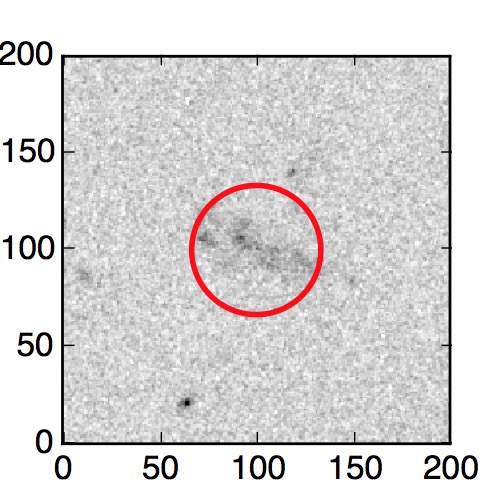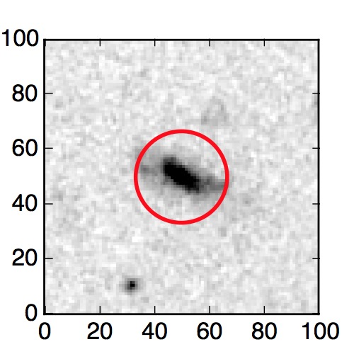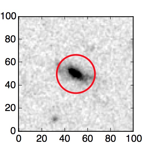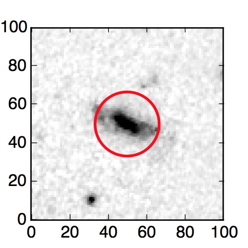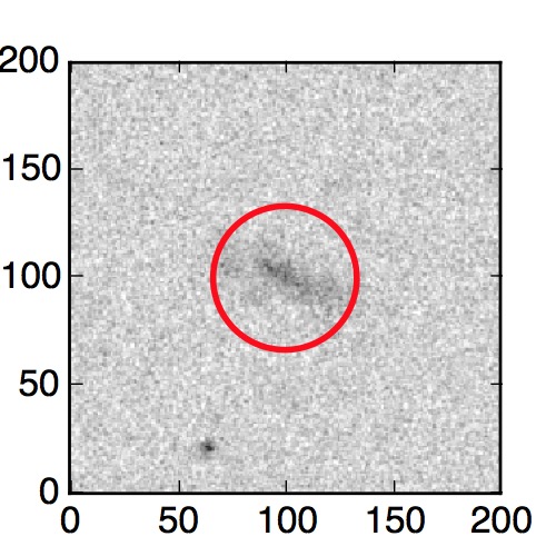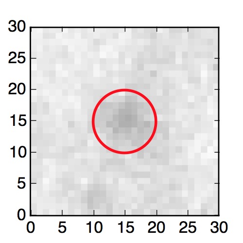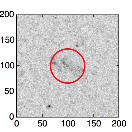 The red circle in the various panels is 1" in radius. The images are 6"x6".