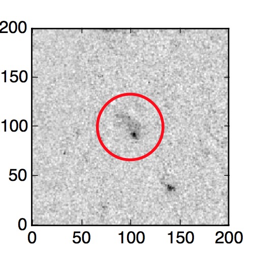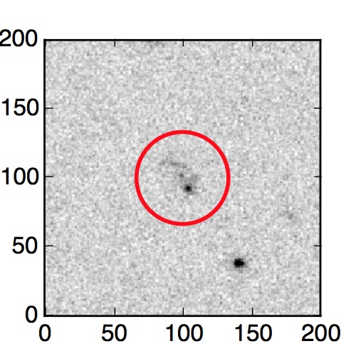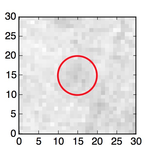 The red circle in the various panels is 1" in radius. The images are 6"x6".