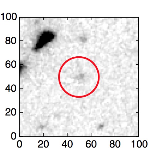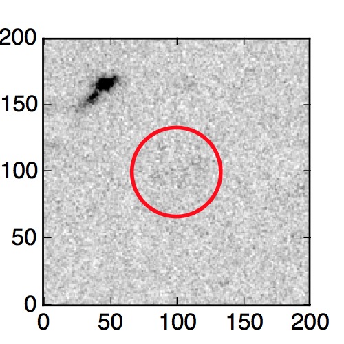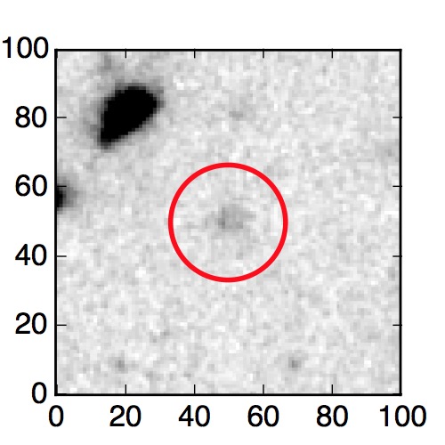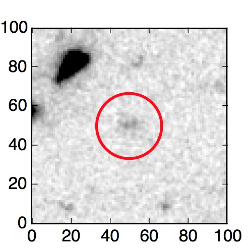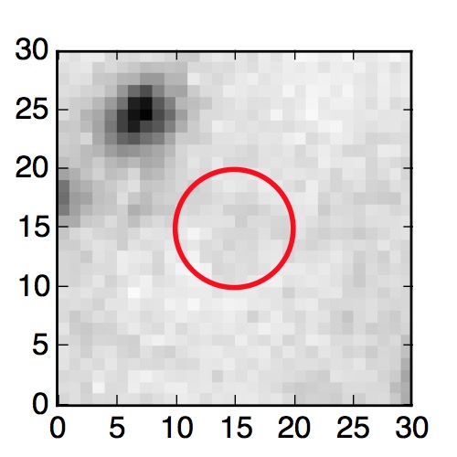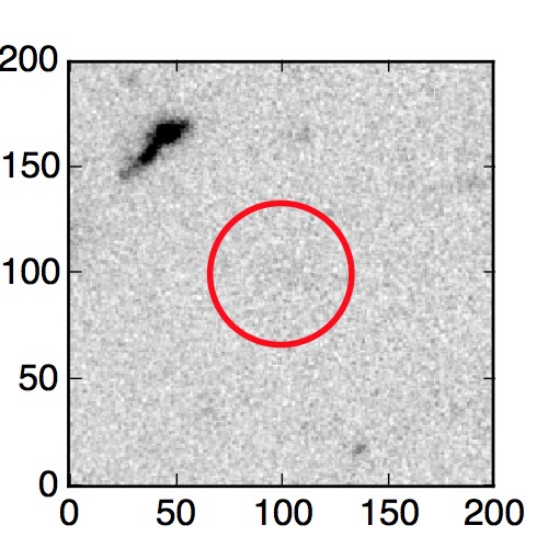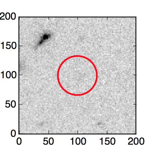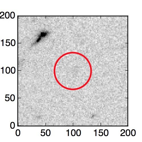 The red circle in the various panels is 1" in radius. The images are 6"x6".