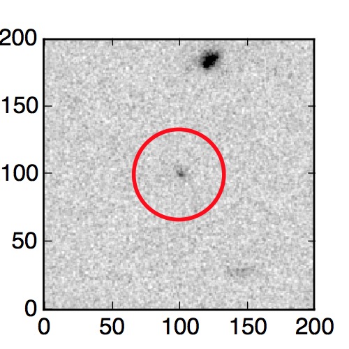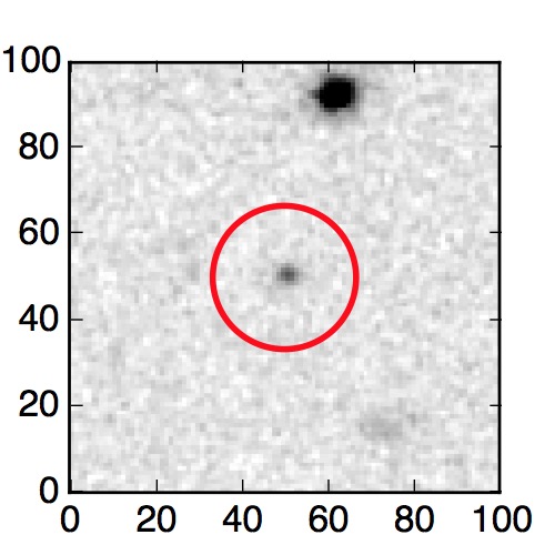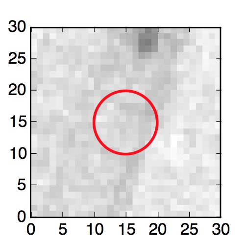 The red circle in the various panels is 1" in radius. The images are 6"x6".