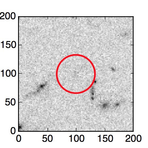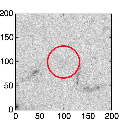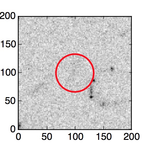 The red circle in the various panels is 1" in radius. The images are 6"x6".