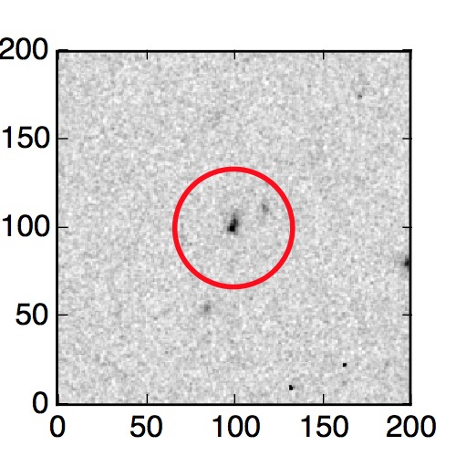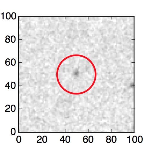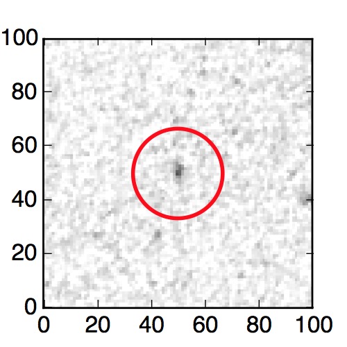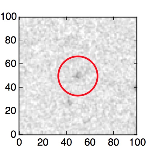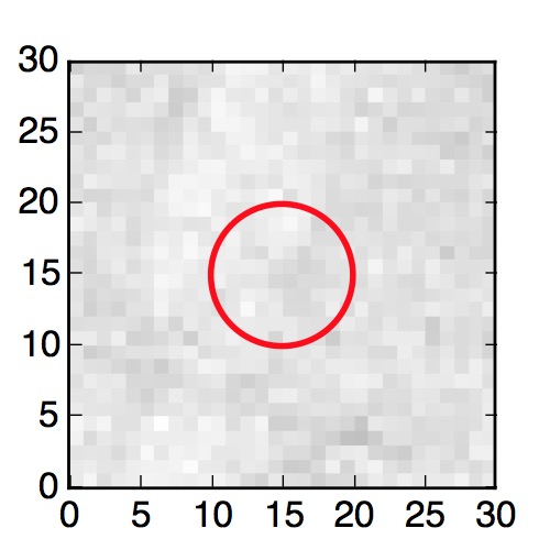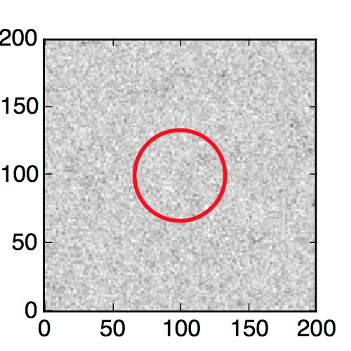 The red circle in the various panels is 1" in radius. The images are 6"x6".