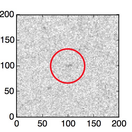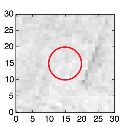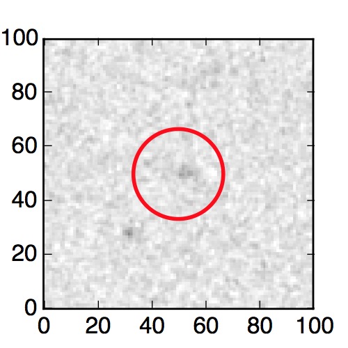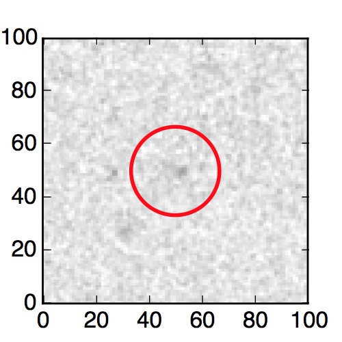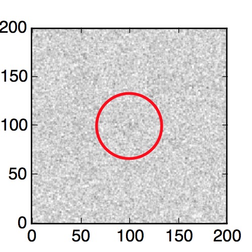 The red circle in the various panels is 1" in radius. The images are 6"x6".