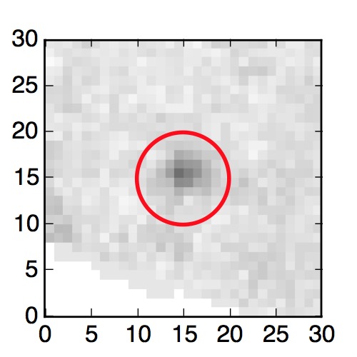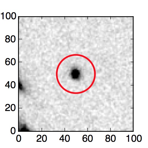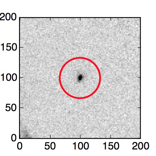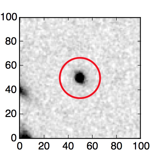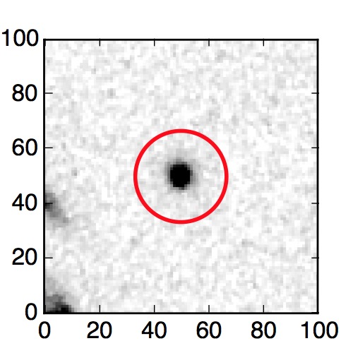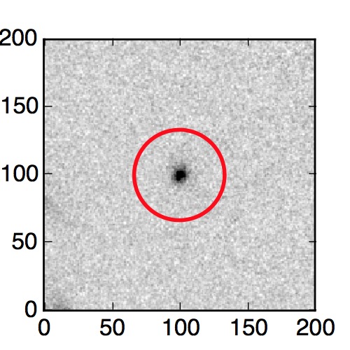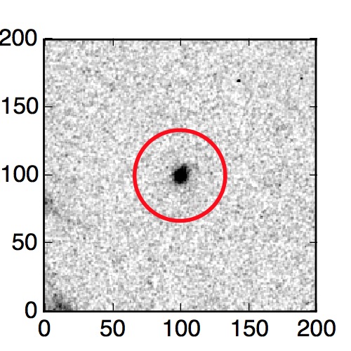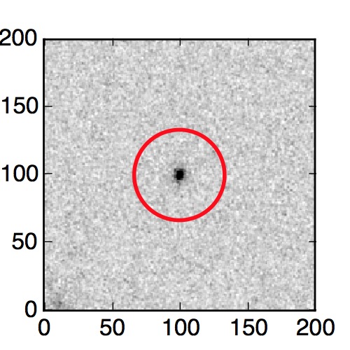 The red circle in the various panels is 1" in radius. The images are 6"x6".