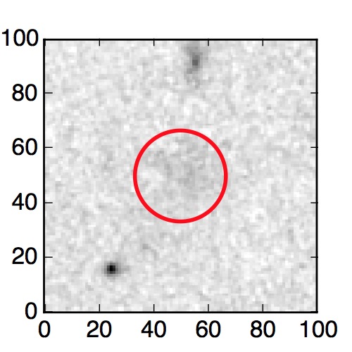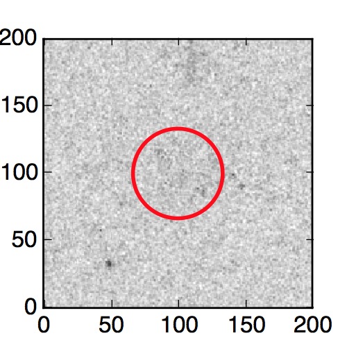 The red circle in the various panels is 1" in radius. The images are 6"x6".
