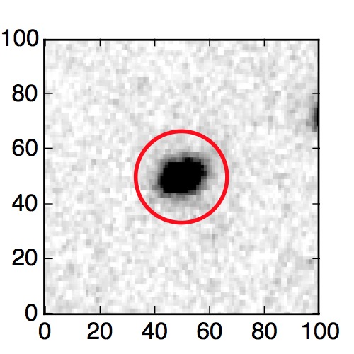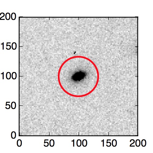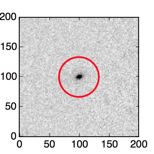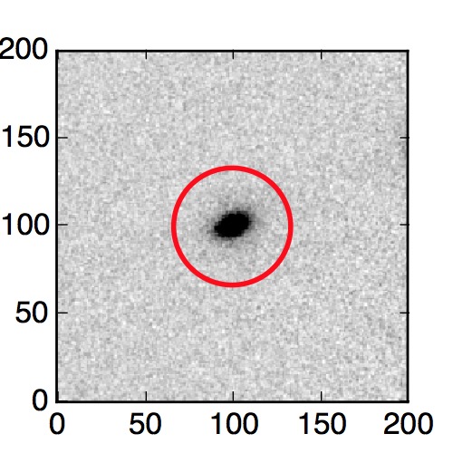 The red circle in the various panels is 1" in radius. The images are 6"x6".