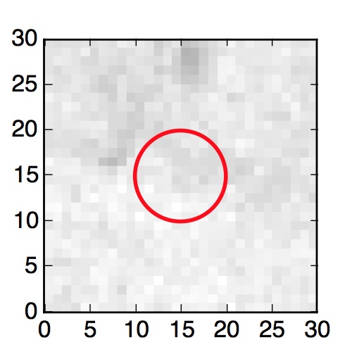 The red circle in the various panels is 1" in radius. The images are 6"x6".
