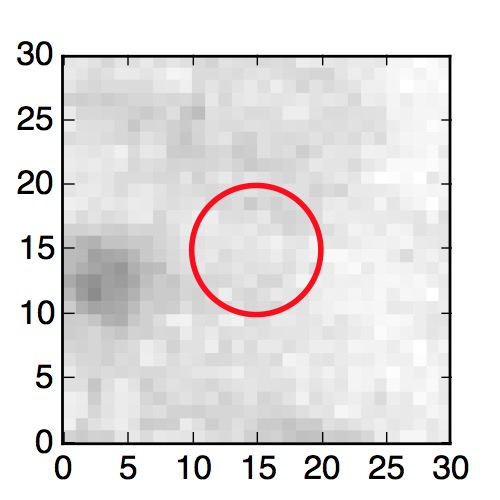The red circle in the various panels is 1" in radius. The images are 6"x6".