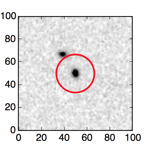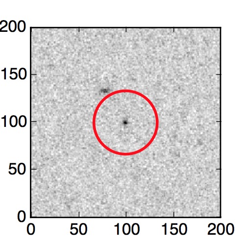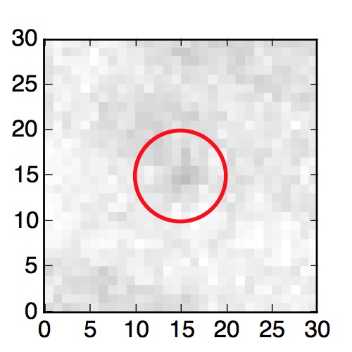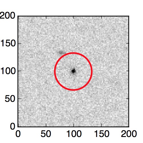 The red circle in the various panels is 1" in radius. The images are 6"x6".