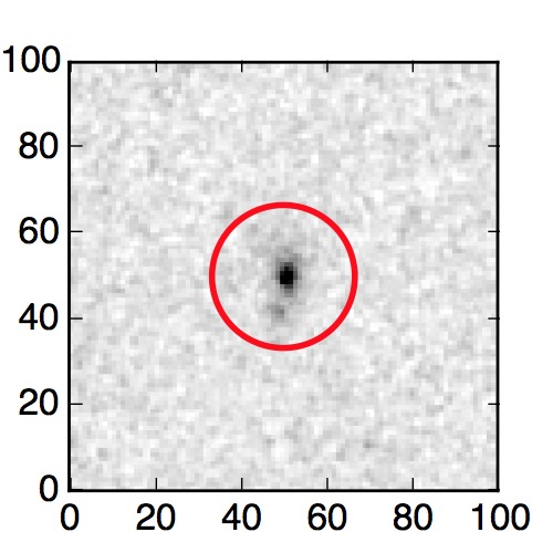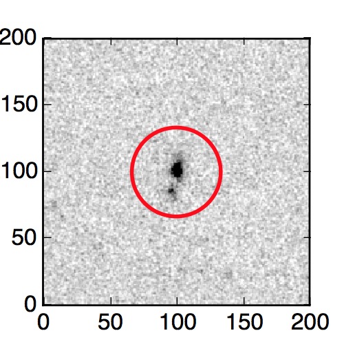 The red circle in the various panels is 1" in radius. The images are 6"x6".