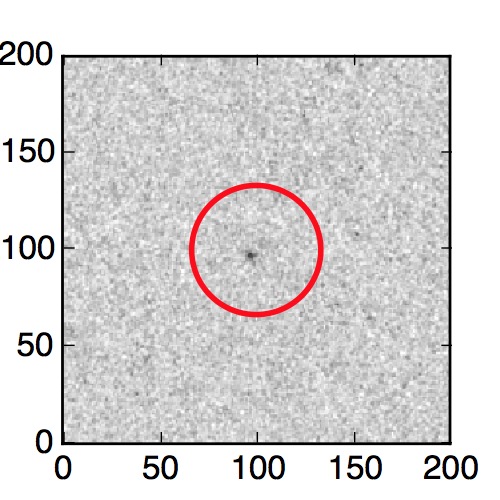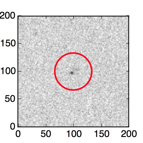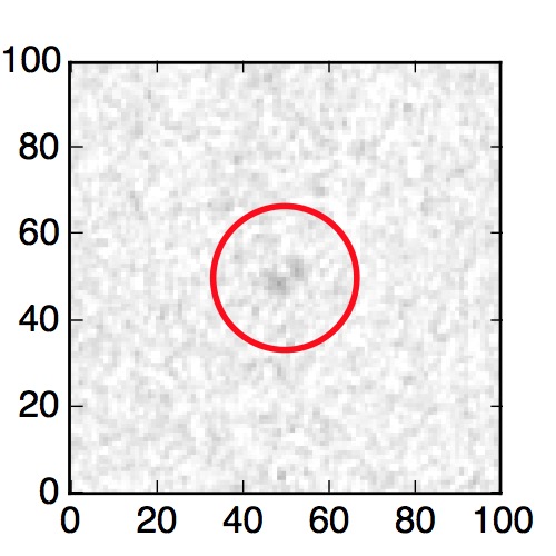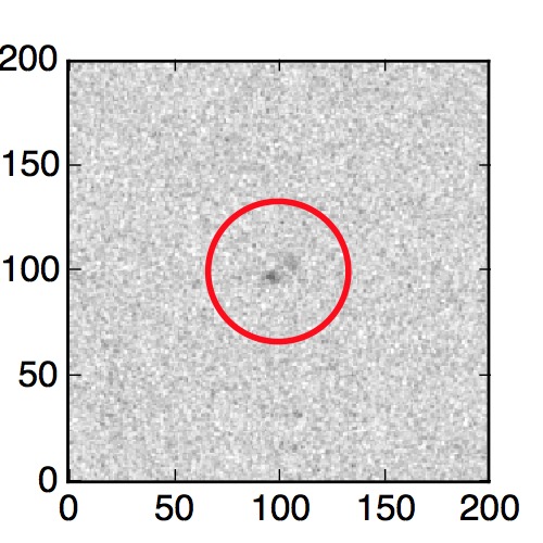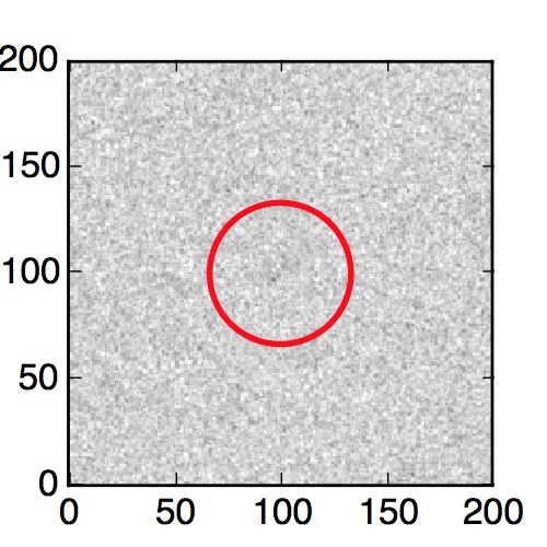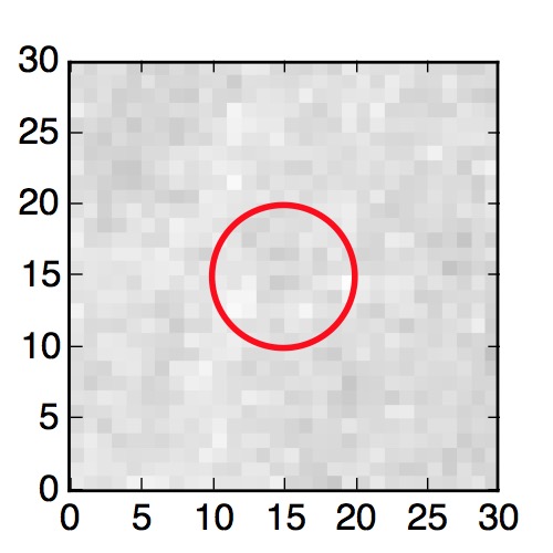 The red circle in the various panels is 1" in radius. The images are 6"x6".